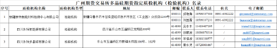 新增北矿检测技术股份有限公司、福建中检矿产品检验检测有限公司、世标检测科技(天津)有限公司为多晶硅期货指定质检机构(取样机构)。