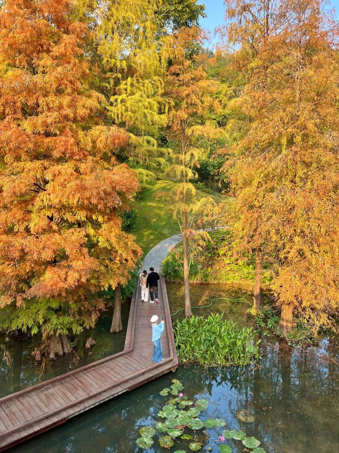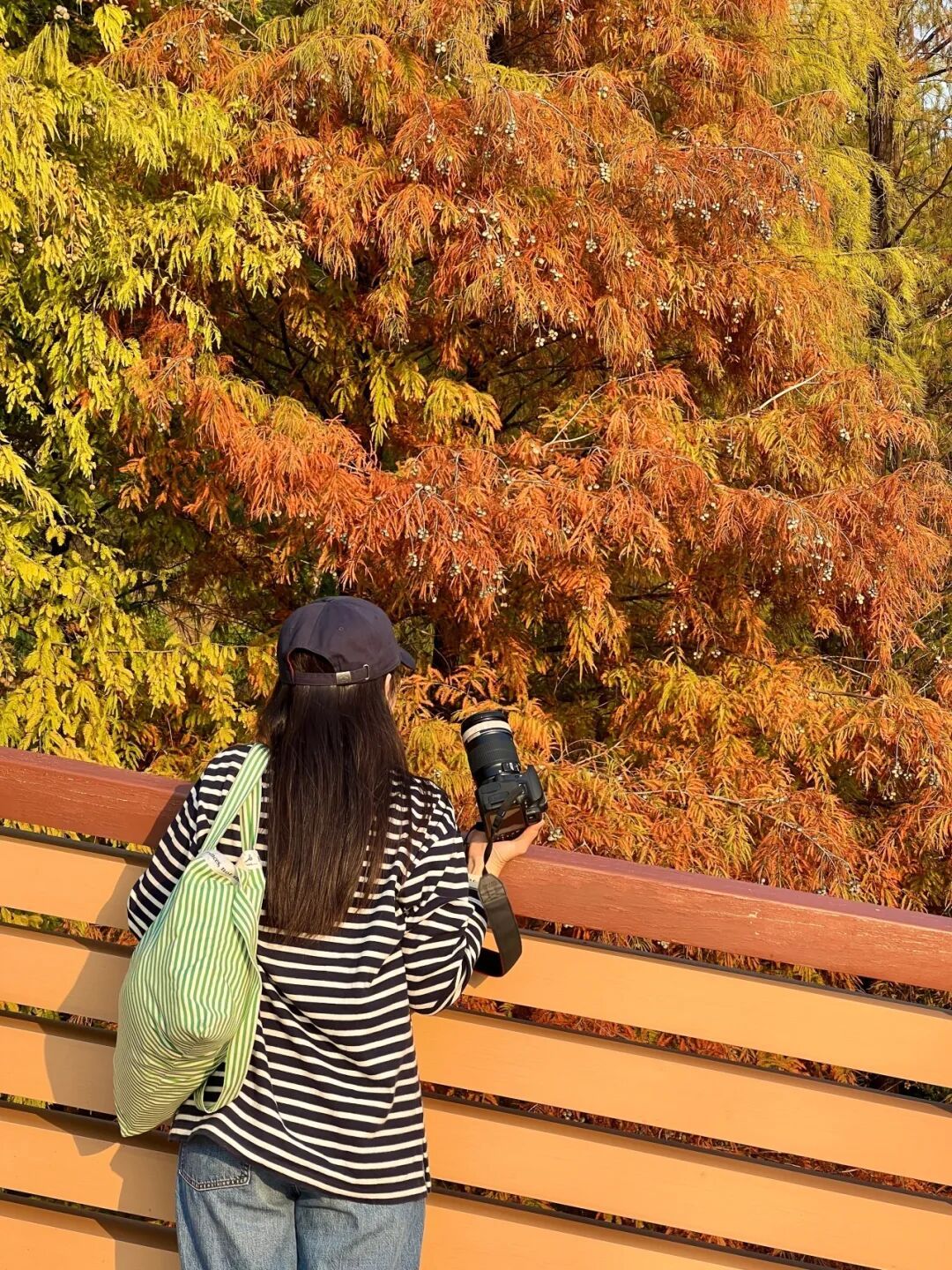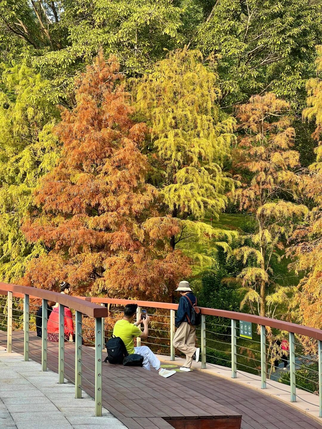 有人沉醉在林中金色的风里,有人举起相机按下快门,也有人坐在桥边静静看着风吹过树梢,让冬天变得温暖而柔软。