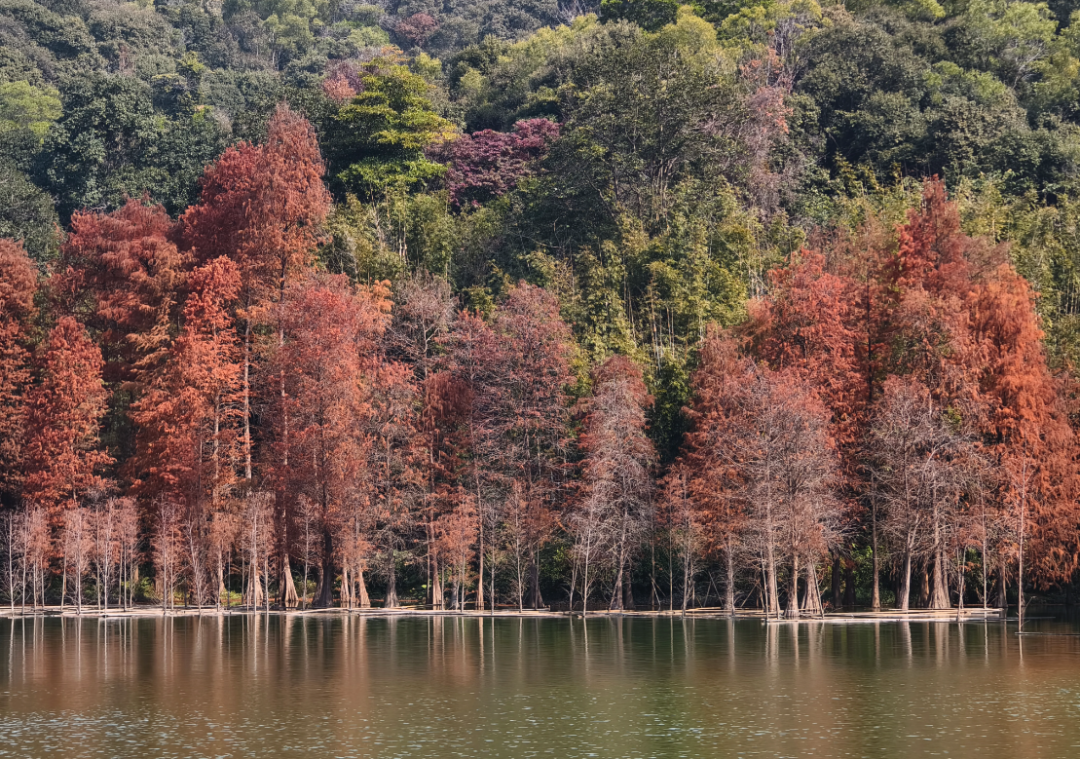 12月起至1月中旬,云溪植物园将迎来落羽杉的“高光季”。届时,成片树林将统一换上深邃的锈红与古铜色,仿佛冬日点燃的一簇簇火苗,又像洒在山林间的一幅巨幅油画,壮丽而治愈。