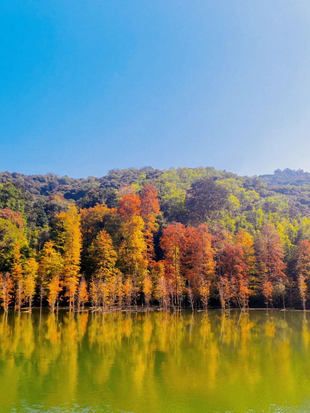 ▲近期黄婆洞水库落羽杉美景